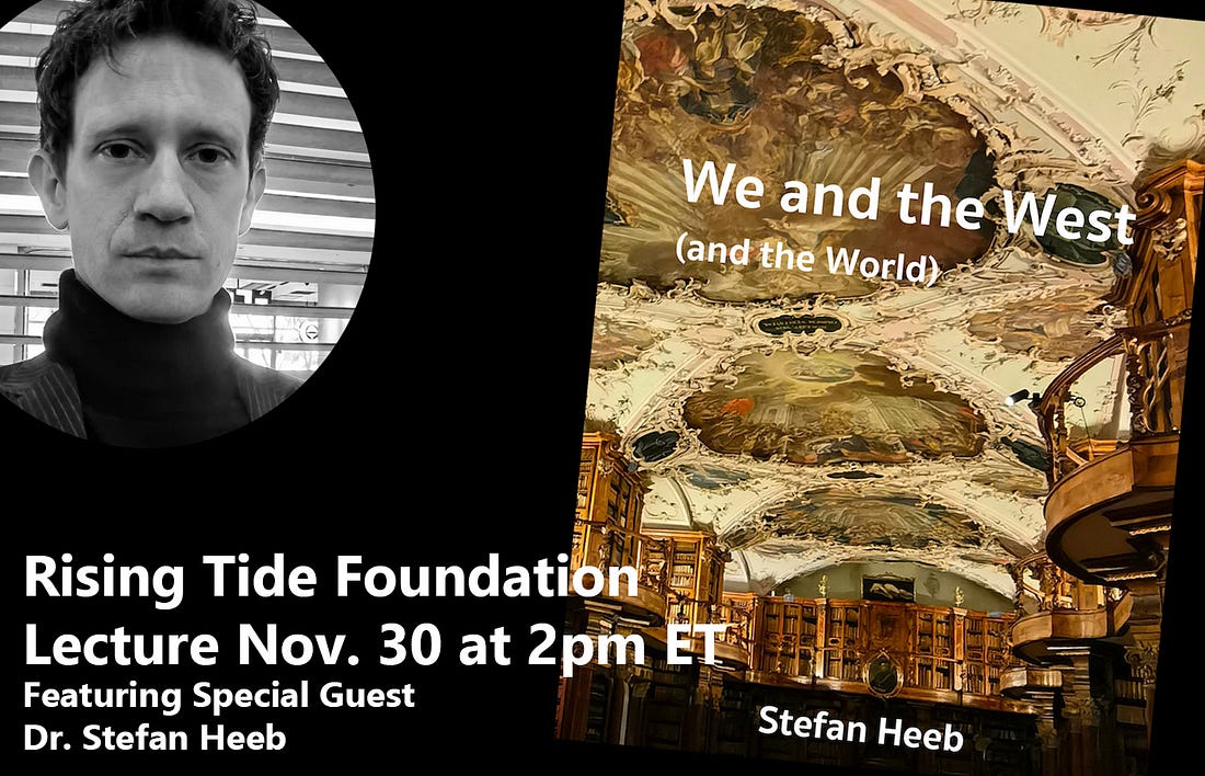 Upcoming RTF Lecture: ‘What is ‘The West’- And How do we relate to it’? (Nov 30 at 2pm ET)Featuring Special Guest: Dr. Stefan HeebFor those who still hungry for geo-economic, historical, cultural and political insights from the highest quality intellects in the field of analysis, after the Sunday Pluralia Dialogos (to be streamed at 11am ET on Youtube), I will be hosting an interactive live lecture featuring Professor Stefan Heeb (on Nov 30 at 2pm Eastern Time) on the topic ‘What is ‘The West’- And How do we relate to it’? Based on his upcoming book We and the West (and the World) About the upcoming book (and lecture): In We and the West (and the World), Stefan Heeb confronts the Western question. He traces the historical evolution of our encompassing yet elusive civilization, and examines the pressing aspects of the West as a contemporary societal and geopolitical entity within the emerging multipolar global order. This panoramic portrait of the lifeworlds and worldviews around us culminates in the decisive question: Whither, post-unipolar West? If you’d like to access that presentation, use the zoom link here:... Subscribe to Rising Tide Foundation to unlock the rest.Become a paying subscriber of Rising Tide Foundation to get access to this post and other subscriber-only content. A subscription gets you: