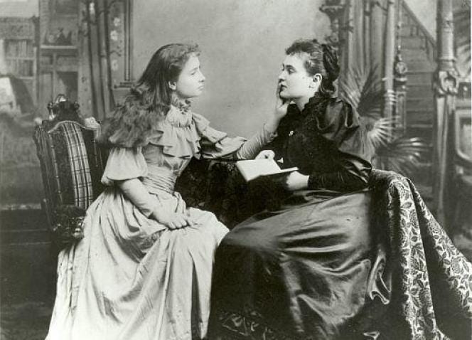 This is again incredibly striking, Helen is describing here that her first realisation, her first understanding of love was not through a physical act of love, for ex. a warm hug, a tender caress, kiss on the cheek, pat on the head, etc, but rather, through her ability to conceptualise love as an abstract idea, through her teacher’s emphasis on the process of thought. Only when Helen understood love as something all encompassing and yet something that could not be touched, did she have an understanding of the most profound form of love, like “invisible lines stretched between my spirit and the spirits of others.“
