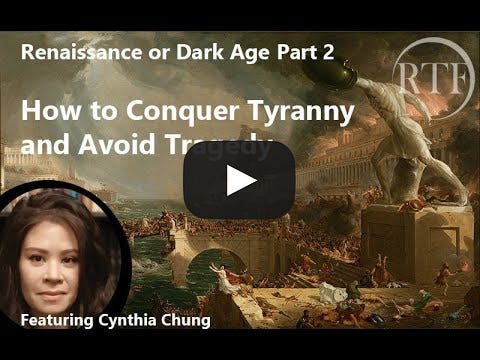 In this first of three presentations delivered to the Renaissance or Dark Age Symposium on September 7, 2025 in Toronto Ontario, Matt Ehret introduces the concept of Renaissances and Dark Ages as the effects of principles (or the defiance) of Universal Principles of Natural Law applicable to ALL societies across ALL ages. What are those common attributes of societies that lose the fitness to survive and what are those common attributes of societies that experience bursts of creative innovation, increased longevity, increased intelligence, increased peace and increased commerce? Does human population growth prove that we are just a cancer on Gaia OR is it possible that population growth can be a sign of doing things right? How do we know? What is the common thread linking philosophy, art, science and statecraft and how does that unite our modern world with the ancient world (and our deep future)? All of these questions and more are explored in Part 1: The Renaissance Principle De-Mystified (Matt Ehret):Part 2: How to Conquer Tyranny and Defeat Tragedy (Cynthia Chung)Read Cynthia’s full essay on Plato and Cicero here.Part 3: Changing Images of Man and Prometheus (David Gosselin)The Rising Tide Foundation (RTF), a non-profit based out of Montreal, Canada, dedicated to the rigorous re-examination of Universal History and the principles governing the cyclical appearance of Renaissances and Dark Ages in human civilization. Consider supporting our work by subscribing to our substack page and Telegram channel at t.me/RisingTideFoundation.You're currently a free subscriber to Rising Tide Foundation. For the full experience, upgrade your subscription. |